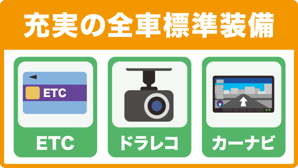 全車 ドラレコ・カーナビ・ETC標準装備!